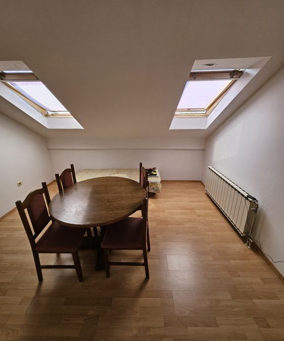Stan se nalazi u mirnoj stambenoj zgradi na zadnjem katu koji pruža predivan pogled na đakovačku katedralu kako s balkona tako i iz kuhinje i spavaće sobe.