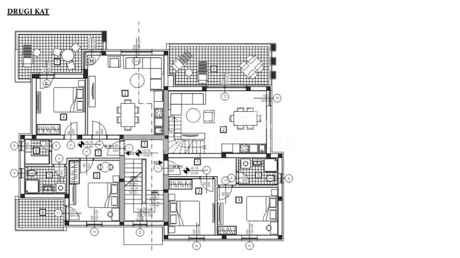 Zidovi između apartmana i stubišta armiranobetonski + dodatna toplinska i zvučna izolacija