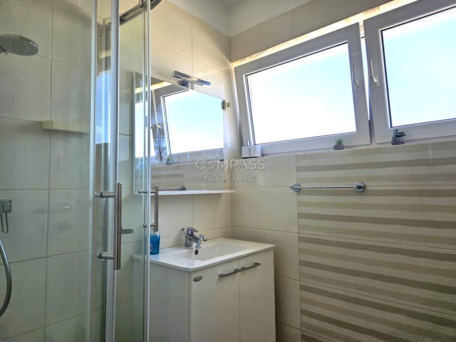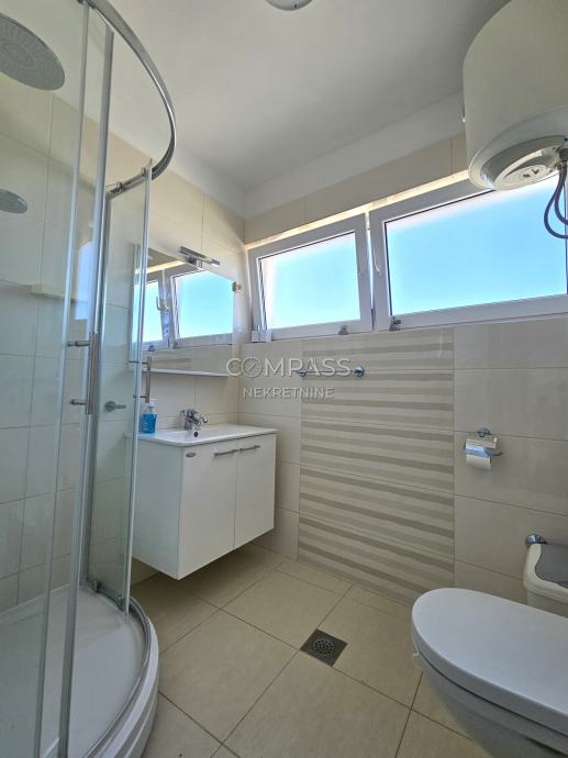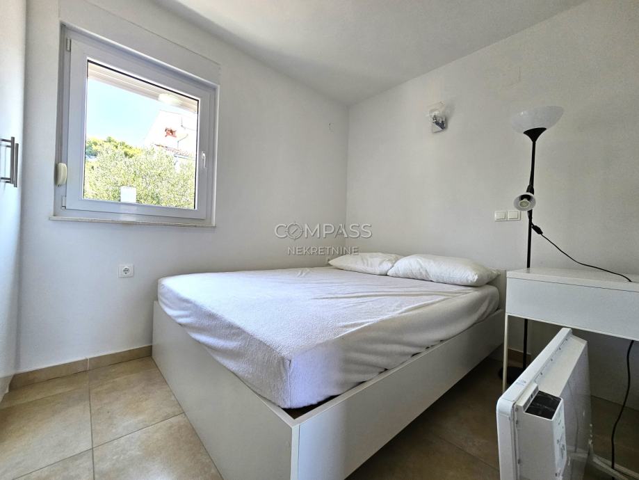We are mediating the rental of a beautiful apartment with a sea view, located in a residential building in Čiovo, Saldun area. The apartment consists of a hallway, bathroom, two bedrooms, and an open-plan living space with a kitchen, dining area, and living room with access to a spacious balcony offering an open sea view. The apartment also includes an outdoor parking space. It is rented fully equipped and furnished, ideal for singles or couples working from home. Beautiful beaches are nearby, while a car is needed for shops. For more information, please contact Leana at +385 95 362 5191 or info@compass.hr