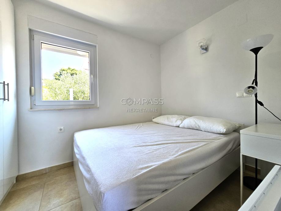 Pośredniczymy w wynajmie pięknego apartamentu z widokiem na morze, położonego w budynku mieszkalnym na Čiovie, w dzielnicy Saldun. Mieszkanie składa się z przedpokoju, łazienki, dwóch sypialni oraz otwartej przestrzeni dziennej z kuchnią, jadalnią i salonem z wyjściem na przestronny balkon z widokiem na otwarte morze. Do mieszkania przynależy zewnętrzne miejsce parkingowe. Apartament jest wynajmowany w pełni umeblowany i wyposażony, idealny dla singli lub par pracujących z domu. W pobliżu znajdują się piękne plaże, natomiast do sklepów potrzebny jest samochód. W celu uzyskania dodatkowych informacji prosimy o kontakt z Leana pod numerem +385 95 362 5191 lub info@compass.hr