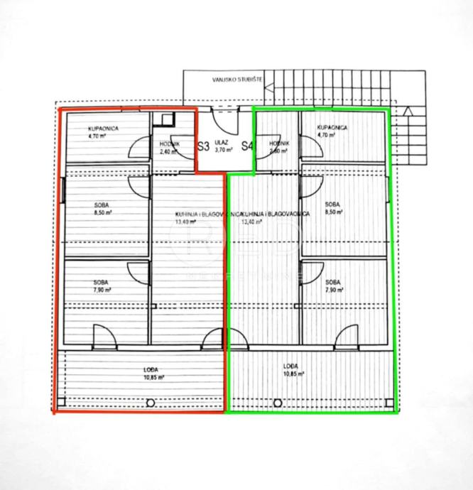 Moguća je kupnja još jednog stana na prvom katu. Cijena u slučaju kupovine oba stana je 250 000 EUR.