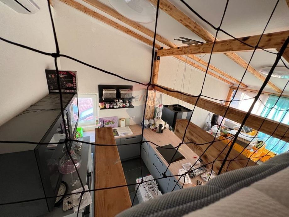 Na prvom katu se nalaze 2 spavaće sobe, kupaonice sa podnim grijanjem. Klima uređaji su postavljeni po svim sobama. Na drugom katu su dodatne dvije spavaće sobe, dvije kupaonice s podnim grijanjem, spavaća soba na galeriji, velika dnevna soba s kuhinjom i blagovaonicom u kojoj su dodatna dva ležaja. Također je na drugom katu terasa sa predivnim pogledom na more.