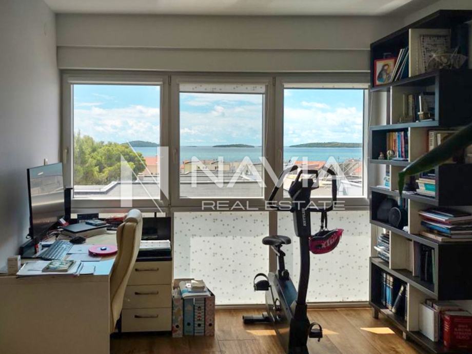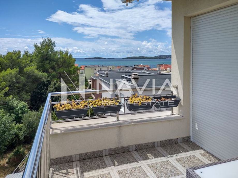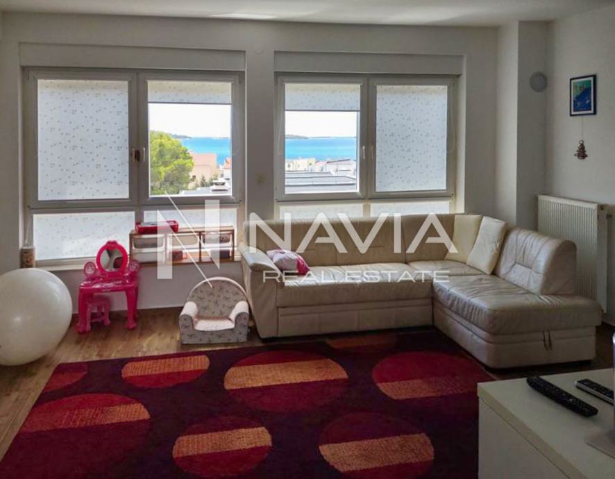 Na prodaju je prostrani, potpuno namješten stan smješten na drugom katu manje zgrade. Stan zauzima cijelu zadnju etažu zgrade, osiguravajući privatnost i neometan pogled na more.
