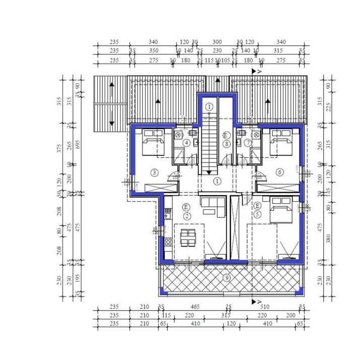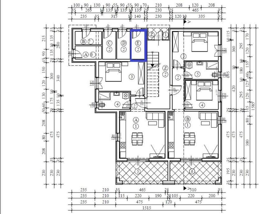 Stan E na drugom katu – potkrovlje, neto površine 109,64 m2 ( stubište, tri spavaće sobe, dva kupatila, kuhinja sa dnevnim boravkom, ostava i terasa ). Spremište u prizemlju 3,78 m2 .