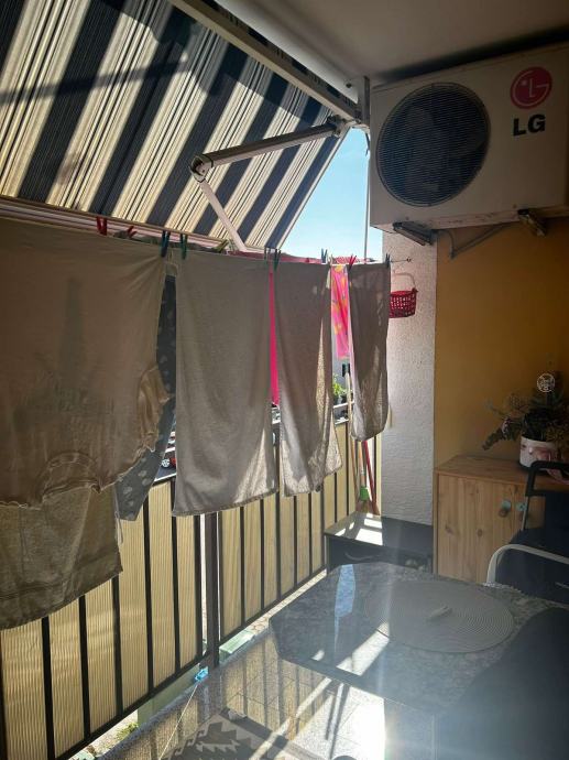 Stan od 71 m2 sa dvije komforne spavaće sobe od kojih jedna ima izlaz na privatnu terasu, kupaonicom, kuhinjom sa trpezarijom i dnevnim boravkom sa izlazom na terasu koja pruža divan pogleda na pitomo obiteljsko naselje.