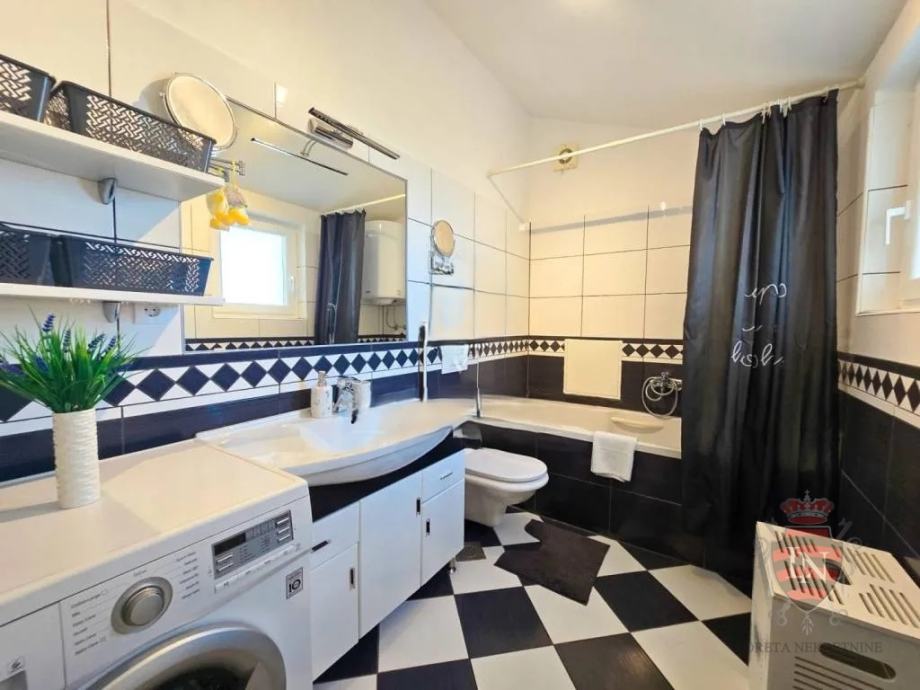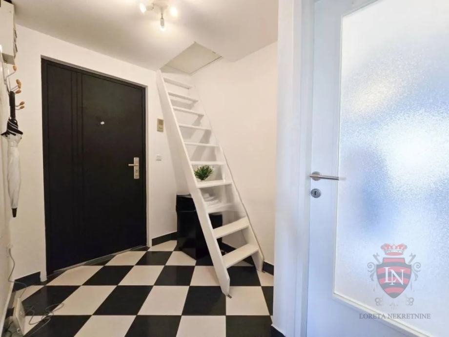 Stan ima 3 spavaće sobe, kupaonu te galeriju na drugoj etaži, koja može služiti kao dodatna spavaća soba ili spremište za odlaganje stvari, veliki dnevni boravak s blagovaonom i odvojenom kuhinjom te balkon na kojem možete uživati u zalascima sunca i prekrasan pogled na stari grad i more.