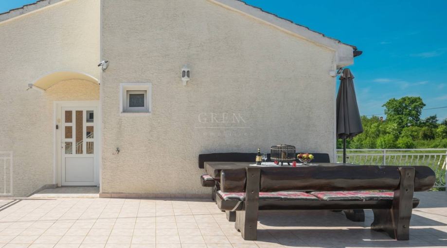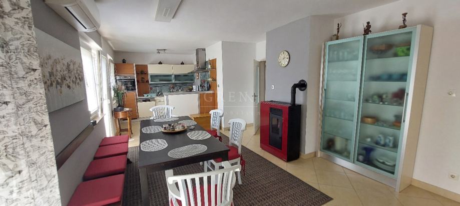 Prodaje se prostrani stan tipa 4,5-sobni (4S+DB) površine 140 m2, smješten na prvom katu stambene zgrade u mirnom dijelu Poreča. Stan se nalazi na jedinoj etaži zgrade, što osigurava dodatnu privatnost i mir. Ispred ulaza u stan nalazi se velika terasa od 40 m2 na kojoj se nalazi kamin i lijepi drveni masivni stol sa klupama. Grijanje na pelete i klima uređaj, a topla voda na solarne panele.