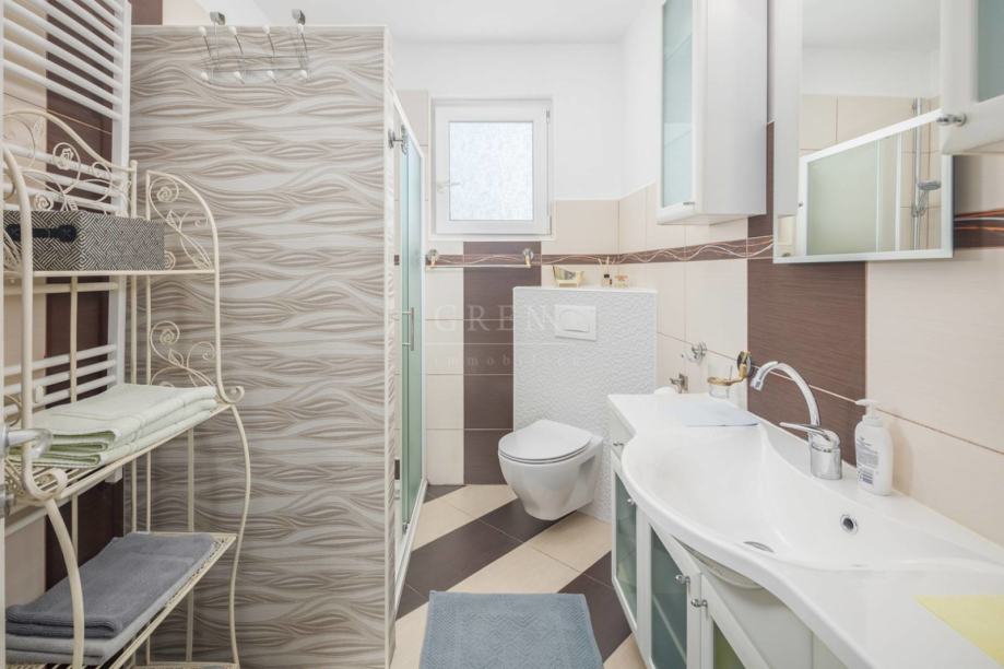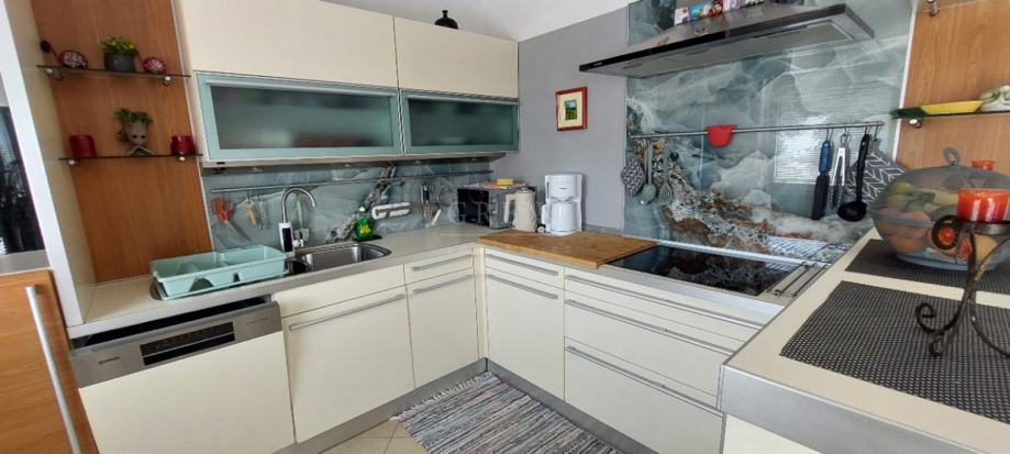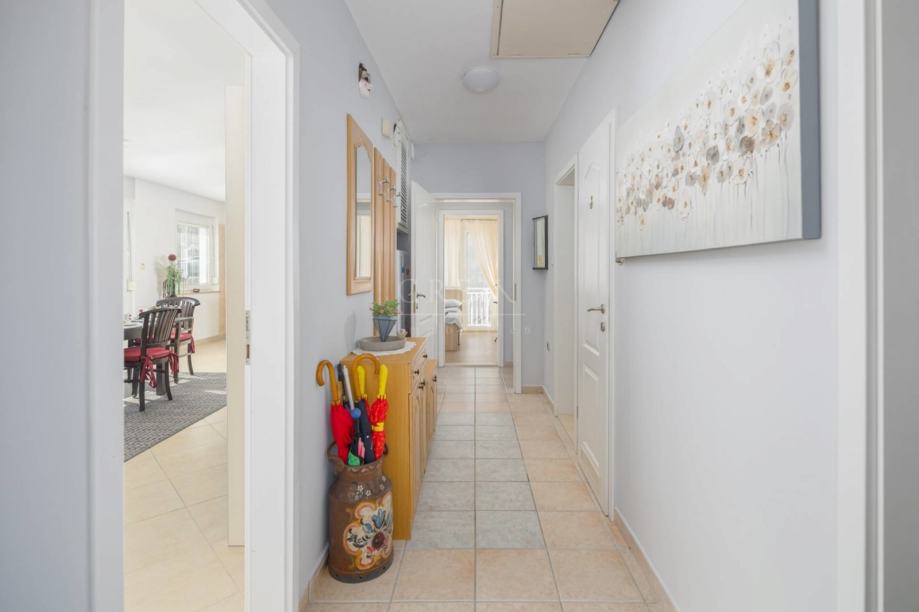 Ova nekretnina ističe se svojom prostranošću te funkcionalnim rasporedom koji uključuje četiri spavaće sobe , dnevni boravak, 2 kupatila i wc za goste,to je idealnim izborom za veću obitelj ili za one koji traže komforan životni prostor. Poseban naglasak stavlja se na balkon veličine 15 m2, s kojeg se pruža pogled na more .
