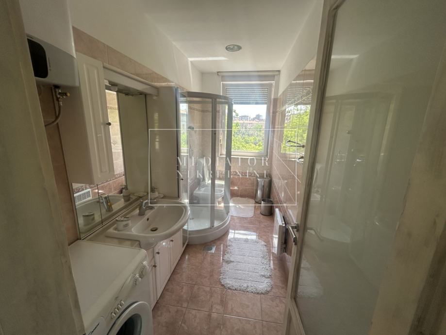 Na četvrtom katu uredno održavane stambene zgrade smjestio se potpuno renoviran stan površine 74 m² koji odiše funkcionalnošću i suvremenim komforom. Sastoji se od dvije prozračne spavaće sobe, svaka s vlastitim izlazom na balkon s pogledom na uređeni park, dnevnog boravka, moderno uređene kuhinje, elegantne kupaonice i praktične ostave. Kao dodatan bonus, stanu pripada i vlastiti skladišni prostor.