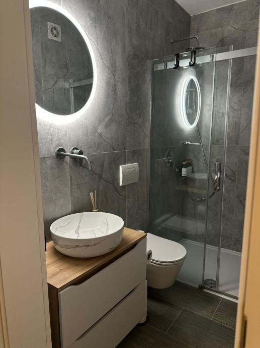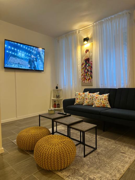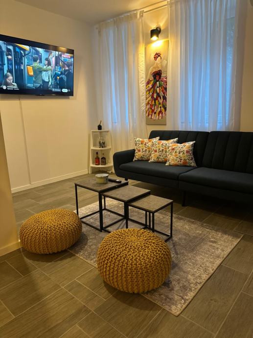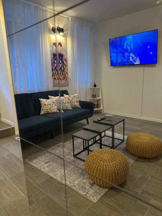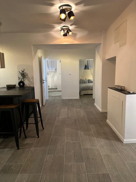 U potpunosti renoviran stan u centru Zagreba, tocnije u Senoinoj ulici. Stan ima dvije spavace sobe, kupaonicu, dnevnu sobu, open space kuhinju u potpunosti namjestenu. Kuhinja je radjena po mjeri, te ima hladnjak, pecnicu, mikrovalnu, perilicu sudja. Cijeli stan je nanovo renoviran na nacin da je sve ogoljeno do cigle, nova temeljna ploca je stavljena, izolacija na podu i zidovima. Ugradjeno je podno grijanje i dizalica topline Daikin sto smanjuje racune na minimum. Stan je takoder opremljen sa klima uredajem, no zapravo i nema potrebe za njim jer je kroz cijelu godinu ugodna temperatura konstanta u stanu. U sobi/kotlovnici se nalazi perilica i susilica. Pogodan za 4 osobe.