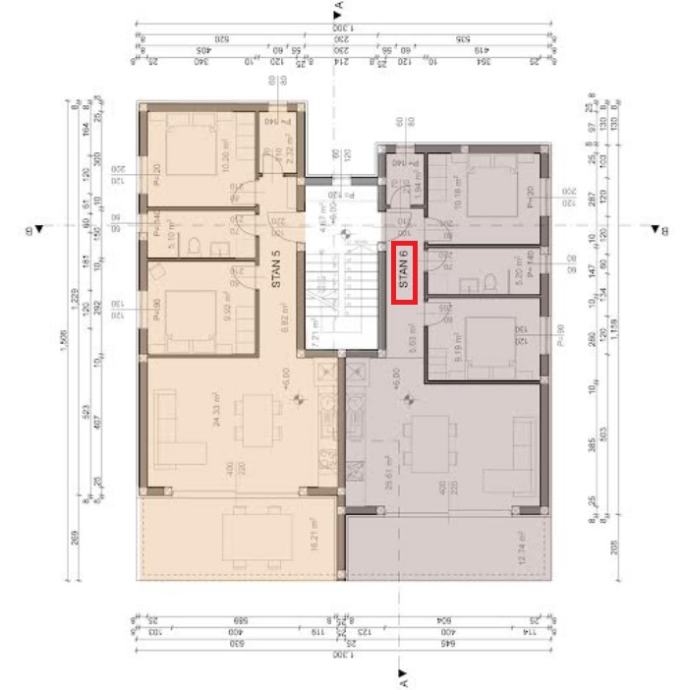 Prodaje se trosobni apartman (S6) neto obračunske površine 67,37 m2 na II katu vrhunske novogradnje sa samo šest apartmana, blizu plaže Sv. Nikola u Povljani na otoku Pagu.