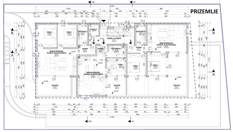 Prodaje se trosobni apartman (S1) u prizemlju nove apartmanske zgrade s liftom u Povljani na otoku Pagu.