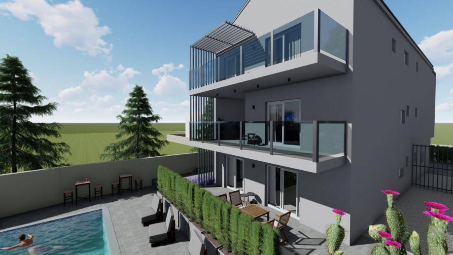 u novoizgrađenoj zgradi s četiri stambene jedinice i privatnim bazenom površine 32 m2 prodaje se: