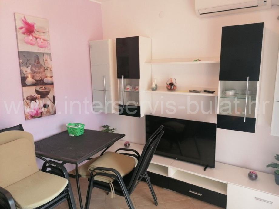 Predmetni stan je u prizemlju i ukupne je korisne površine 60,89m2. Sastoji se od hodnika, dvije spavaće sobe, kupaonice, te kuhinje sa dnevnim boravkom i izlazom na terasu sa koje se pruža pogled na more. Stan je uredan i održavan, te odmah useljiv. Stanu pripada i jedno parkirno mjesto.
