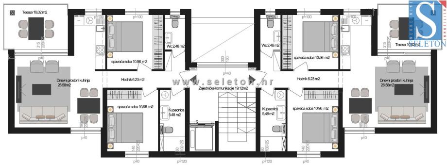 Identičan stan se nalazi u prizemlju i na prvom katu zgrade, stanu u prizemlju pripada i vrt.