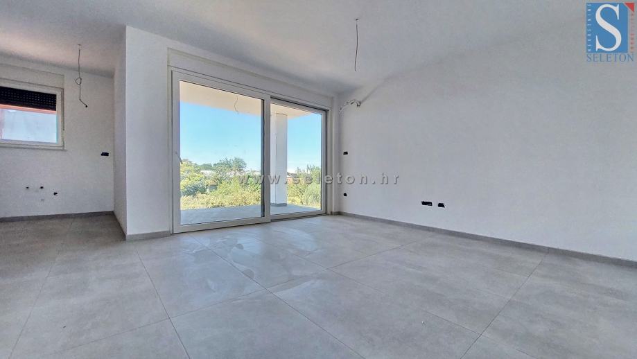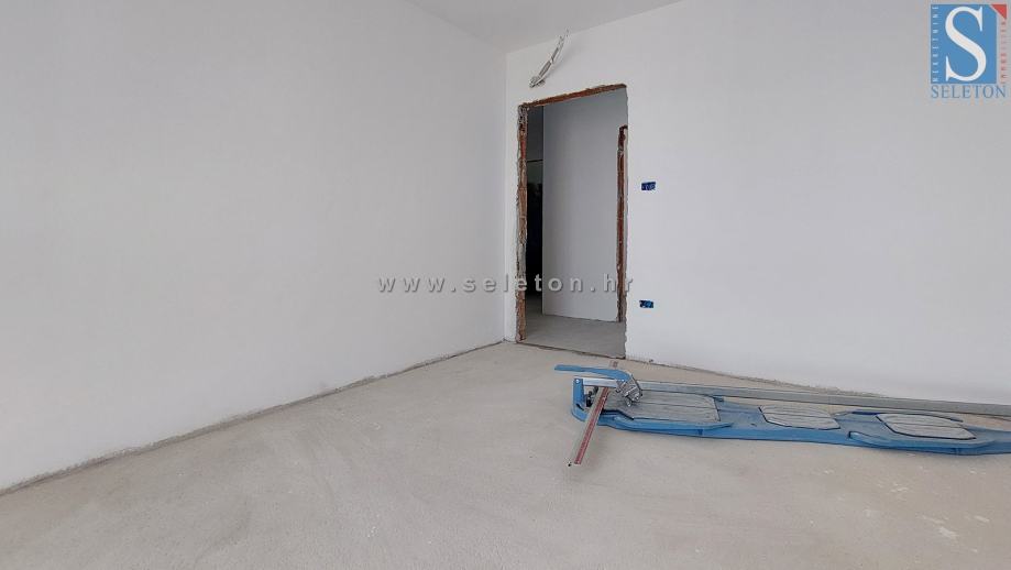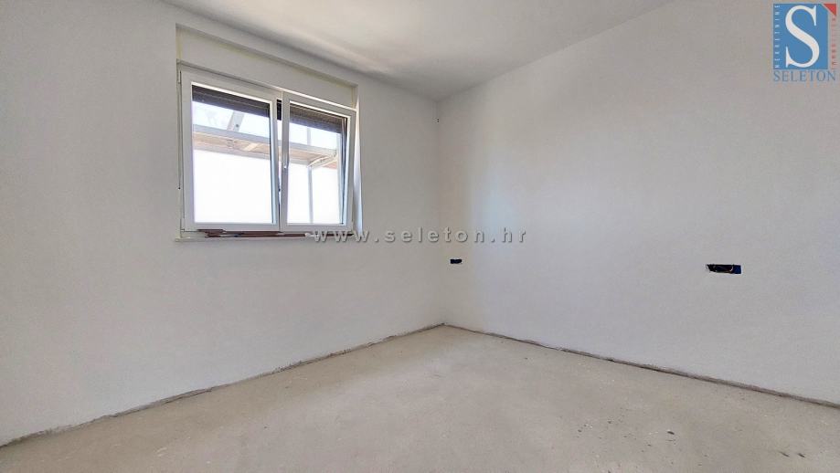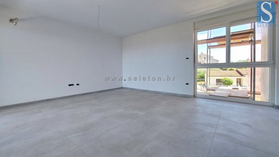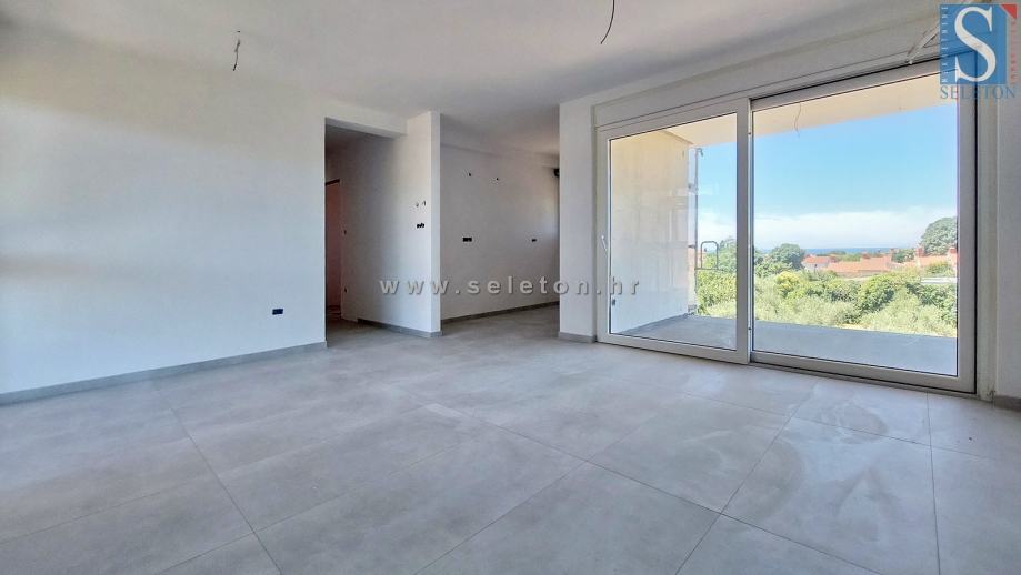 Prodaje se stan u izgradnji u okolici Poreča površine 67 m2, sastoji se od dnevnog boravka, blagovaonice, kuhinje, hodnika, natkrivene terase, dvije spavaće sobe, kupaonice i WC-a. Stan se nalazi na prvom katu u zgradi sa liftom, ima pogled na more, podno grijanje na struju u dnevnom dijelu i kupaonici, protuprovalna vrata, klima uređaj u dnevnom boravku i u spavaćim sobama, spremište u podrumu zgrade površine 5 m2 i dva parking mjesta ispred zgrade. Stan je udaljen ca 2,5 km od mora i 9 km od centra Poreča, u naselju se nalaze restorani, kafići, ljekarna, škola i supermarket.