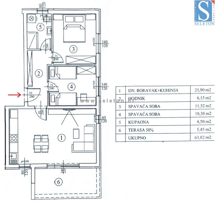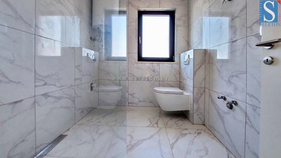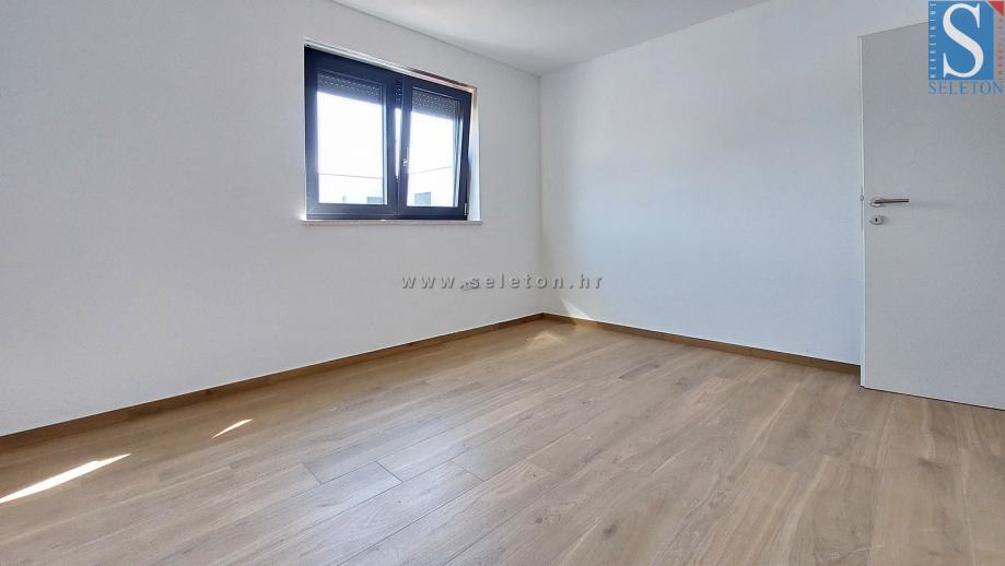 U novoj modernoj zgradi prodaje se stan na prvom katu zgrade, stan ima površinu od 64 m², sastoji se od dnevnog boravka, kuhinje, natkrivene terase, hodnika, 2 spavaće sobe i kupatila. Stan je orijentiran prema jugu što garantira puno prirodnog svijetla, ima klima uređaj, protuprovalna ulazna vrata, podno grijanje u dnevnom boravku i kupaonici, pripada mu jedno parkirno mjesto ispred zgrade. Stan je udaljen ca 9 km od Poreča i oko 10 km od mora.