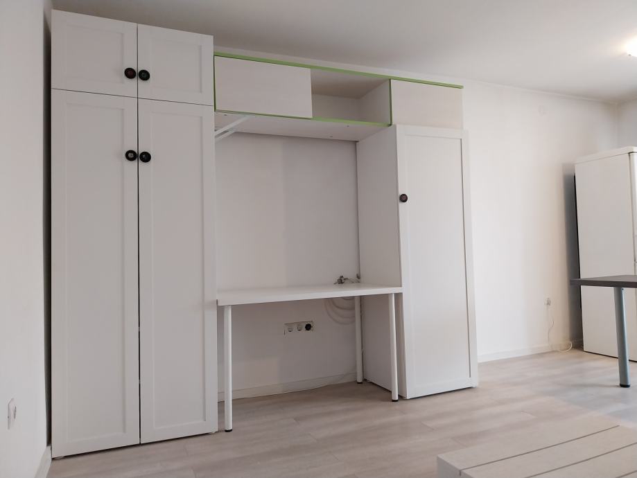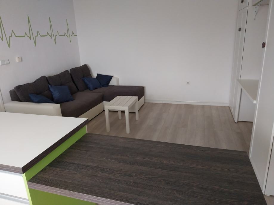 Sastoji se od ulaznog hodnika, sobe sa kuhinjom, balkona i kupaonice. Zgrada nema lift. Stan je okrenut na istok.