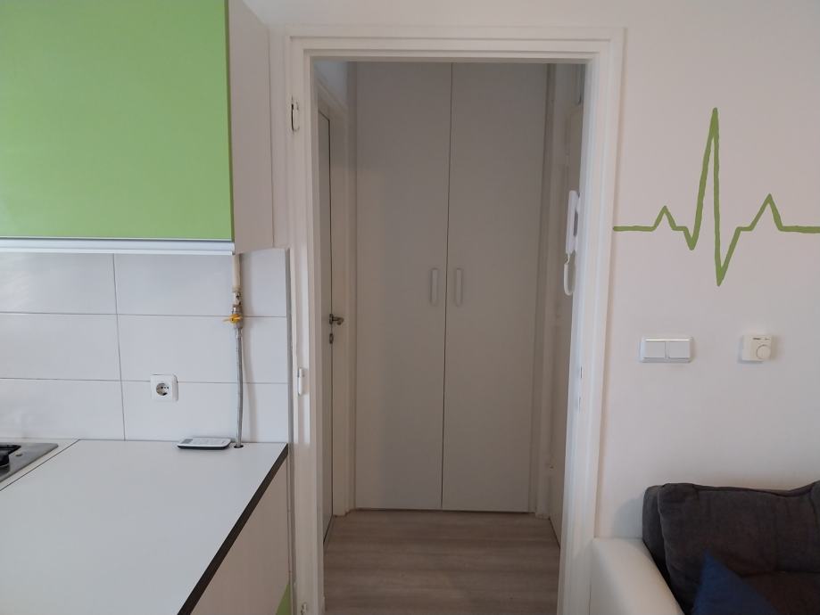 Stan je veličine 24,12 m2, na zadnjem katu/polukatu iznad IV. kata, sa vlastitim spremištem u prizemlju zgrade.