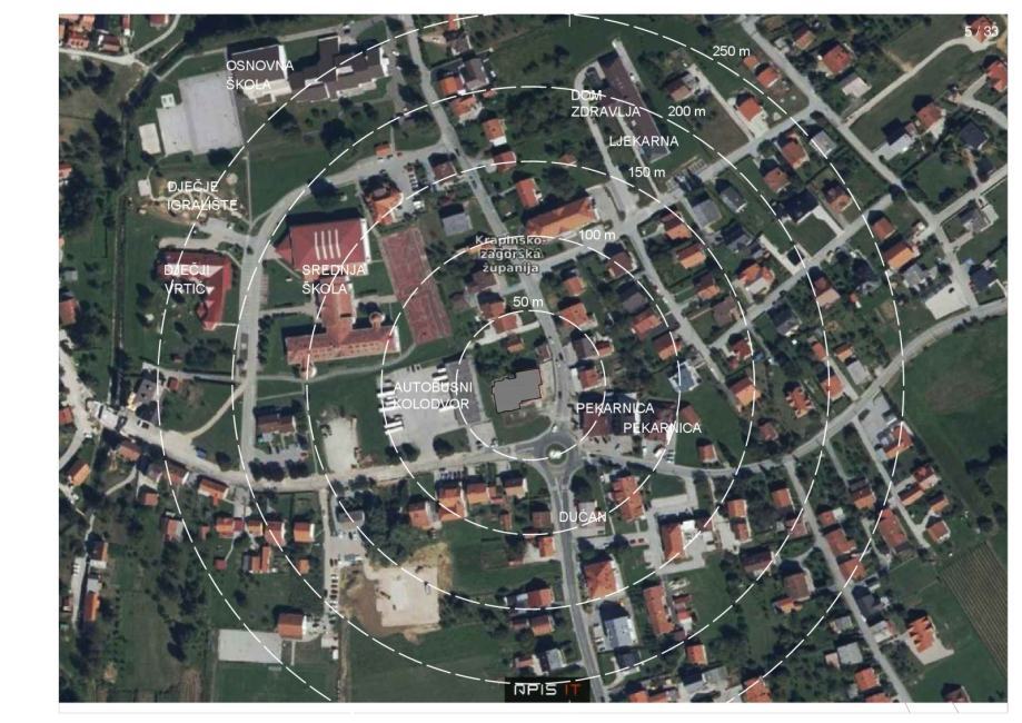 Stan se nalazi u sklopu projekta novogradnje u samom centru Pregrade. Udaljen je oko 100 m od srednje škole, osnovne škole, ambulante, dječjeg vrtića, a dućan i pekara udaljeni su 50 do 70m. Sve na jednom mjestu, stan po mjeri za svakog čovjeka.