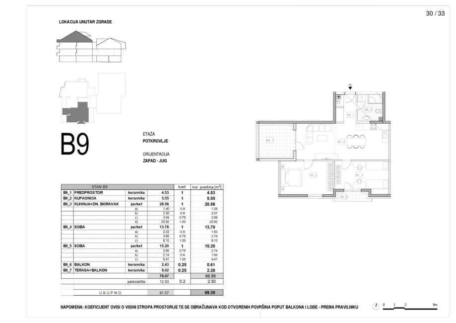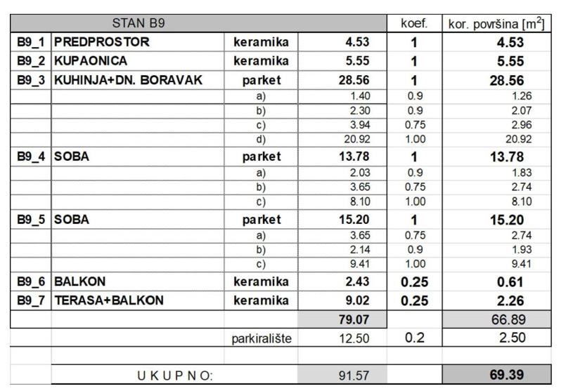 Stanu pripada parkirno mjesto. Stan ima PVC stolariju sa termičkim mostom i troslojnim staklom, ulazna vrata protuprovalna i protupožarna po certifikatu EI 30-CSm, predviđeni energecki certifikat A/A+ .