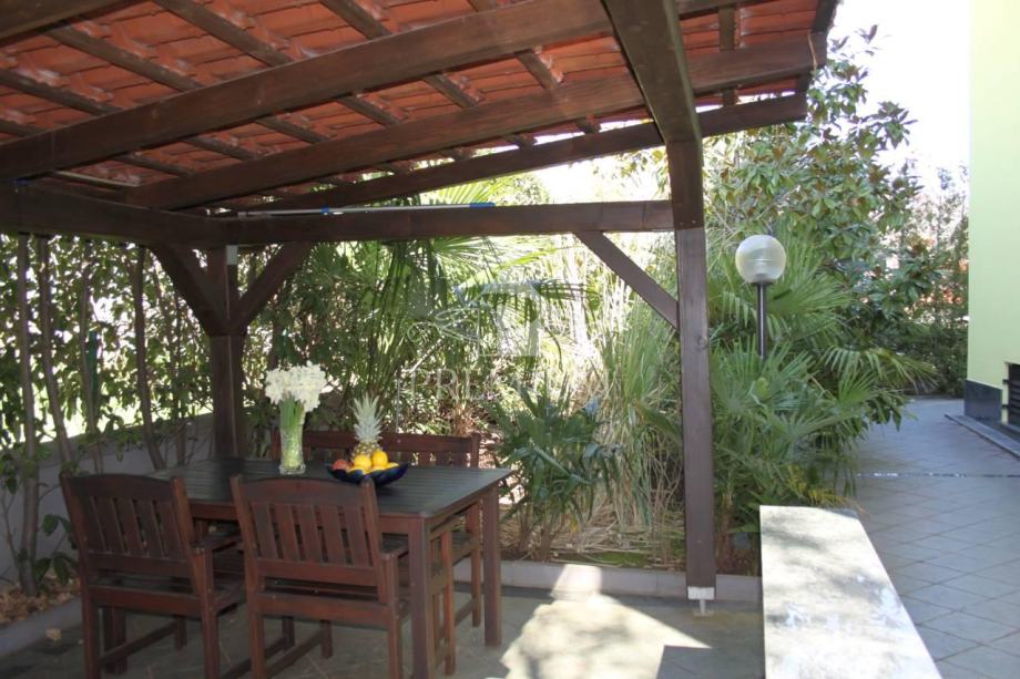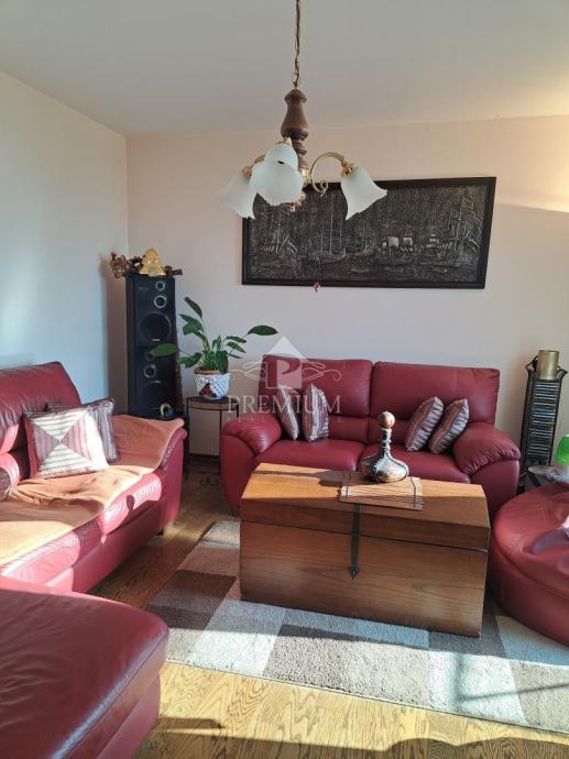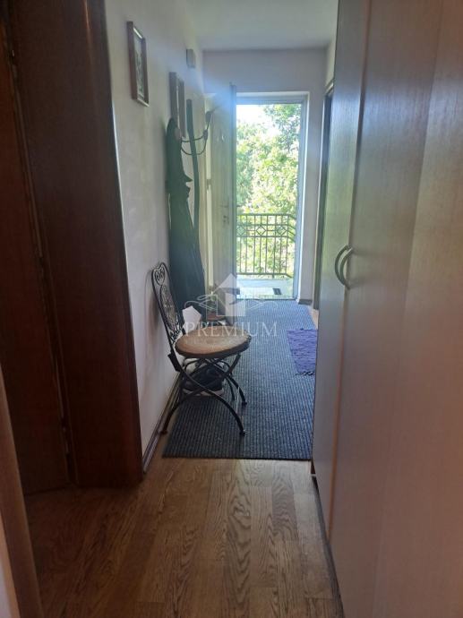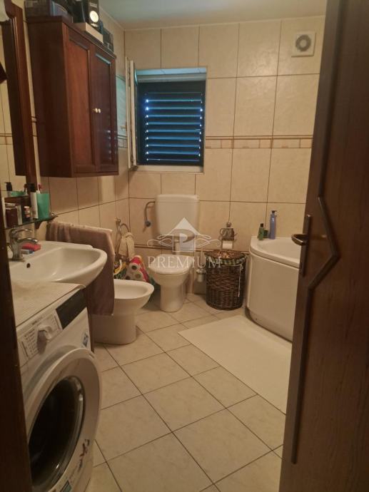 Stan se nalazi na prvom katu i sastoji se od kuhinje, dnevnog boravka, dvije spavaće sobe, kupaonice, dva hodnika, stubišta i terase, ukupne površine 97,76 m2. Stanu pripadaju dva parkirna mjesta. Nekretnina ima veliku i uređenu okućnicu s parkingom, sjenicom i roštiljem, ograđenu kovanom ogradom. Potkrovlje je upotrebljivo, ali trenutno nenamješteno. U cijeni je kompletan namještaj.