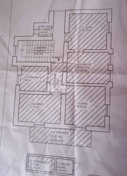 Sastoji se od jedne spavaće sobe, dnevnog boravka, kuhinje, kupaonice, hodnika!