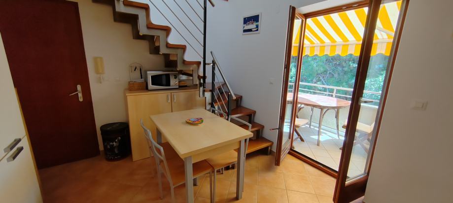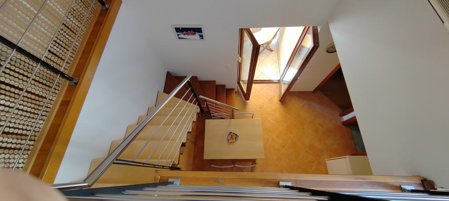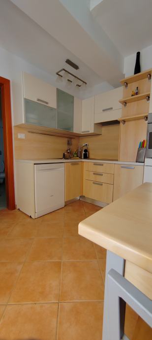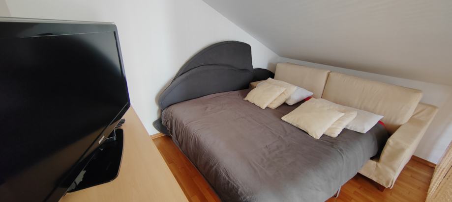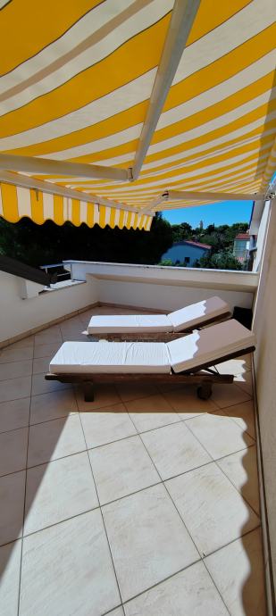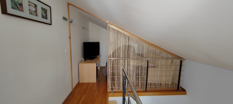 Stan na vrhu zgrade (netto površine 39m2, stambene površine c.a. 65m2), dvoetažni sa pristupom na krovnu terasu (cca 20 m2), sa vlastitim parkirnim mjestom, podrumskom ostavom, potpuno namješten, uredan, uredna zgrada, čisto vlasništvo, zgrada sa uporabnom dozvolom. Direktno od vlasnika, bez agencijske provizije.