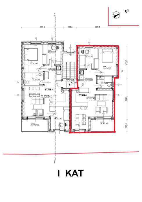 Stan S4 se sastoji od ulaznog hodnika, koncept open space dnevnog boravka, kuhinje i blagavaonice, dvije spavaće sobe, kupaonice te loggie. Stanu pripadaju dva vanjsko parkirna mjesta.