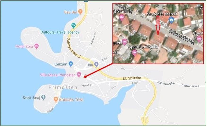 Zgrada je smještena u centru, oko 200 m ispod (južno) od Jadranske magistrale, okružena je sličnim stambenim zgradama, a od mora je udaljena 100 m.