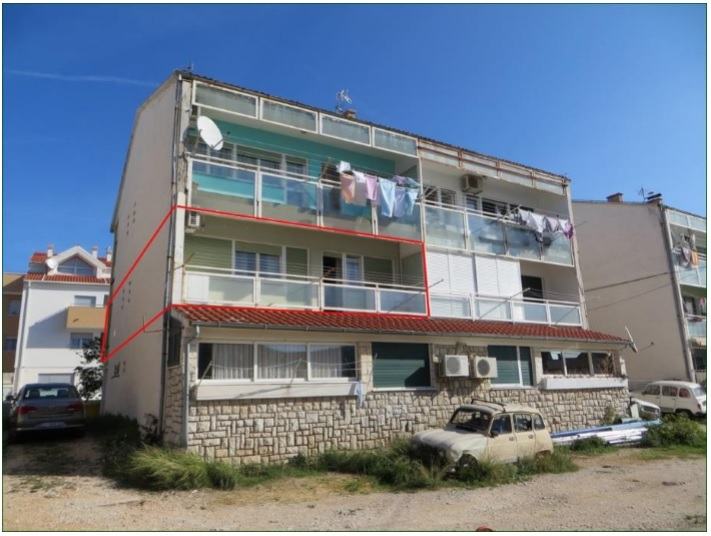 Prodaje se stan na 1. katu samostojeće zgrade (dvokatnica), ukupne površine 111,88 m². Stan se sastoji od kuhinje i blagovaonice, dnevnog boravka, 2 sobe, hodnika, kupaonice, WC-a i loggie, te drvarnice (spremišta) u prizemlju objekta.