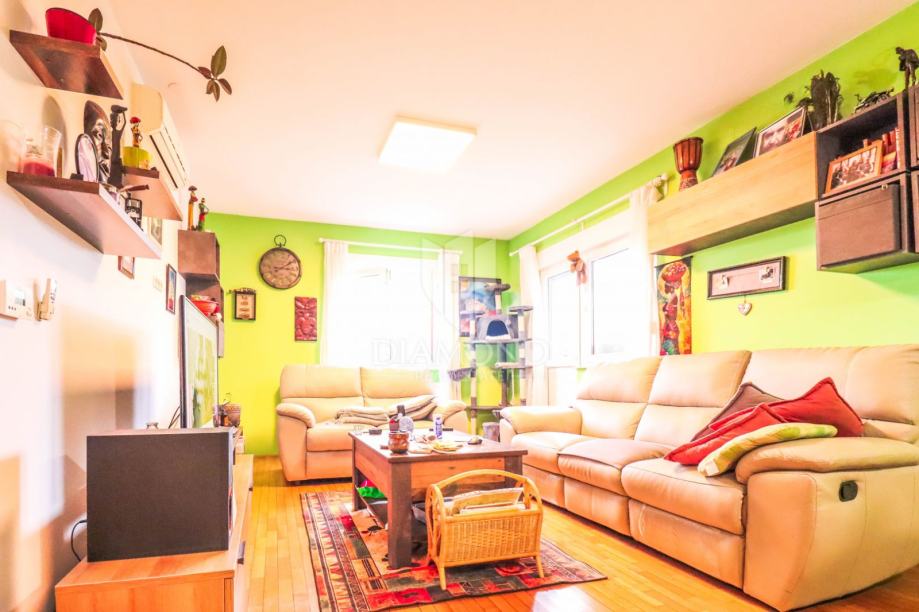 Prodaje se lijepo uređen stan od 78m2 u viskom prizemlju zgrade - zbog blagog brijega stan pruža osjećaj prvog kata. Stanu pripada vlastiti ograđeni vrt od 38 m2 okružen zelenilom, s natkrivenom terasom, kaminom i posebnim dijelom predviđenim za roštiljanje, idealnim za opuštanje i druženja na otvorenom.