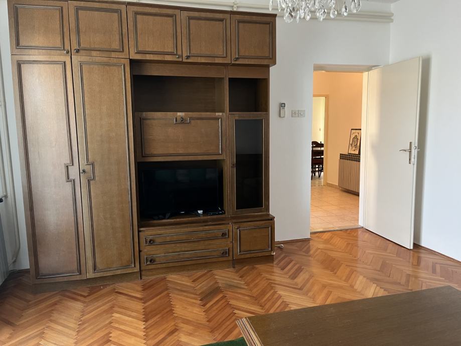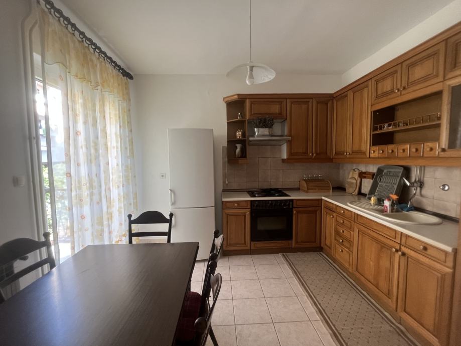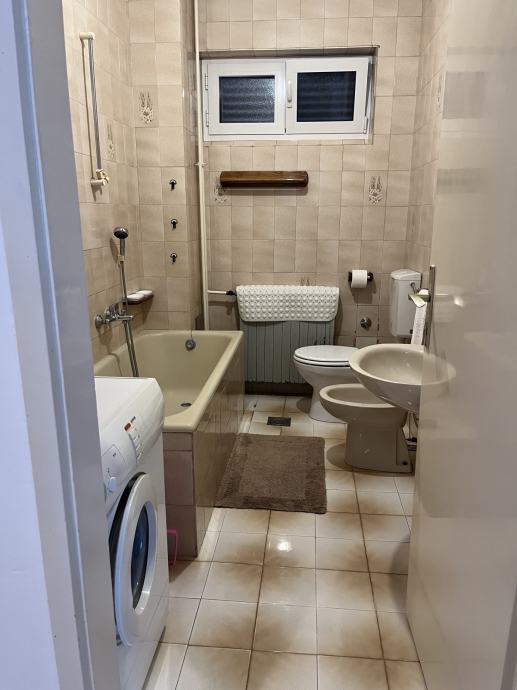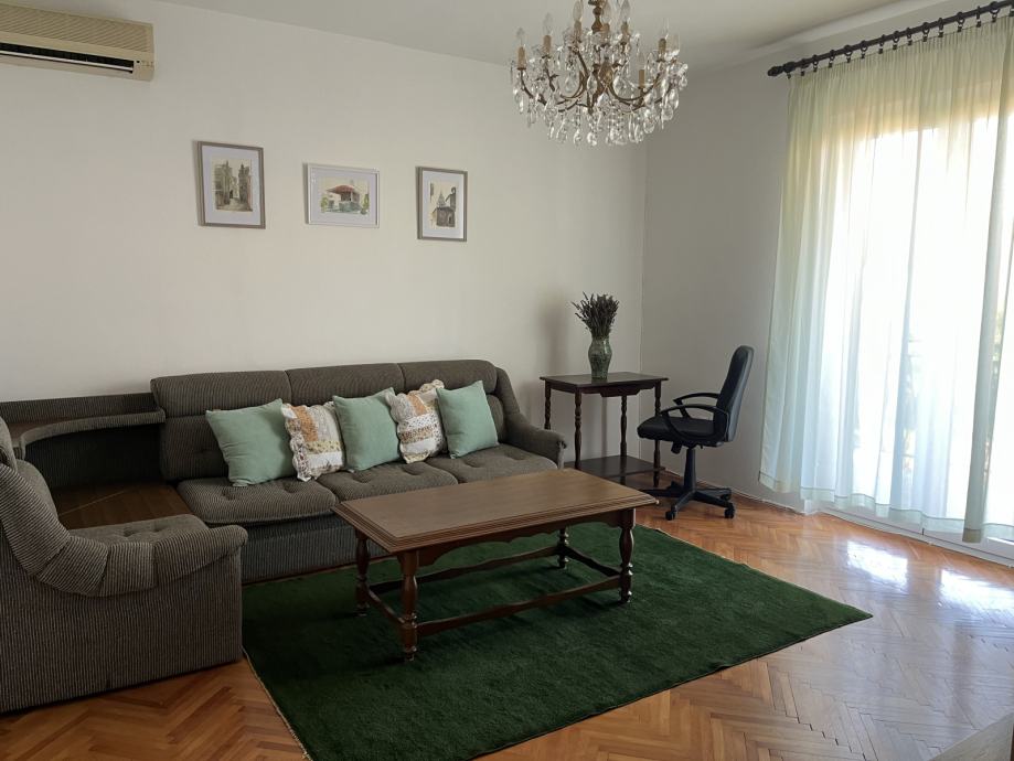 Odmah useljiv i kompletno namješten (perilica za rublje, klima, centralno grijanje, opremljena kuhinja, dva balkona).