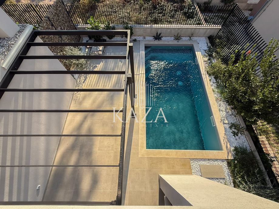 Vsaki hiši pripada dvorišče z bazenom, prostor za sončenje, čudovit mediteranski vrt, vgrajen žar ter 2 parkirni mesti.