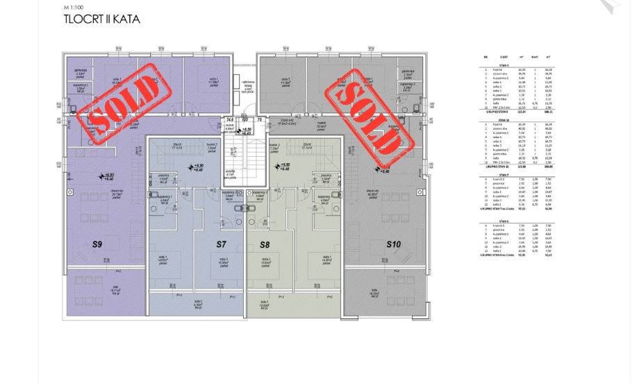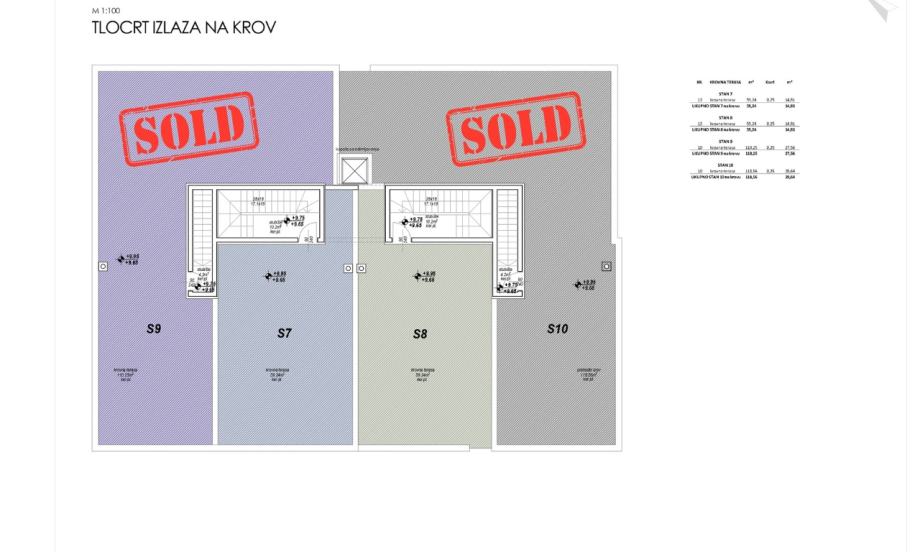 Dvoetažni luksuzan stan s krovnom terasom površine 14,81 m². Ima dvije spavaće sobe, dvije kupaonice sa WC-om, zaseban WC na 1. katu, praonicu i dvije lođe. Pripada mu i 1 parkirno mjesto. Cijeli stan ima parket, PVC stolariju, Elec rolete, komarnike, podno grijanje po cijelom stanu, klime u sobama, stropne klime u dnevnom boravku.