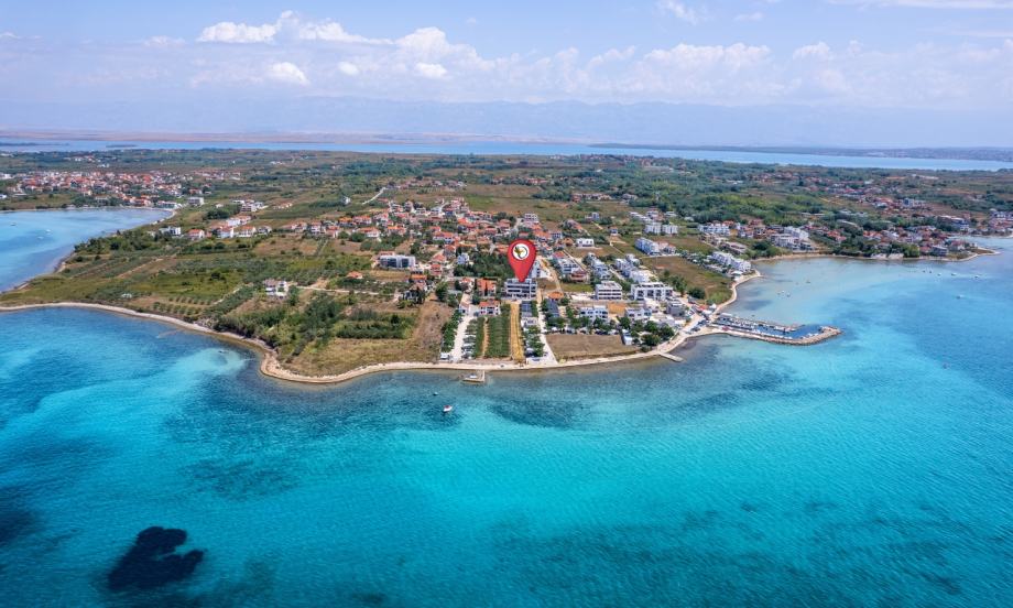Zgrada se nalazi u Privlaci, svega 20 minuta od Zadra, 350 metara od popularne plaže Pliša i 1,5 kilometara od duge pješčane plaže Bilotinjak.