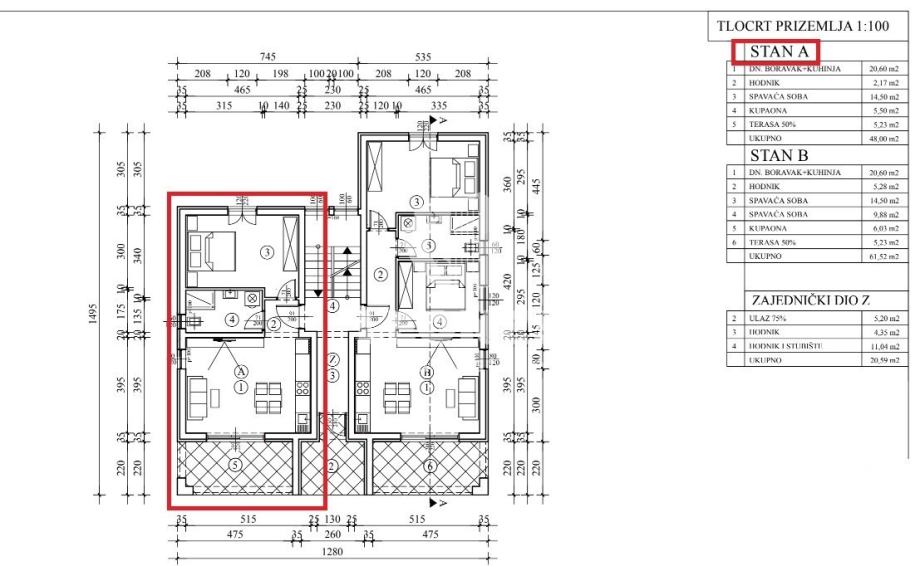 Stanu pripada i parkirno mjesto kao i spremište od 3,96m2.