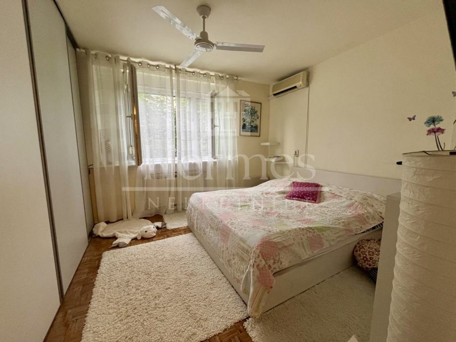 Prodajemo stan u prizemlju kuće, a koja se sastoji od dvije stambene jedinice. Svaki stan ima zasebni ulaz. Stan se prostire na cca. 80 m2, a sastoji se jedne spavaće sobe, dnevnog boravka, odvojene kuhinje, kupaonice s WC-om, te blagovaonice koja se po potrebi može pregraditi u drugu spavaću sobu (što i je bila ranije). Stanu pripada i garaža, te pola dvorišta koje je stvarno prirodna oaza usred grada!!