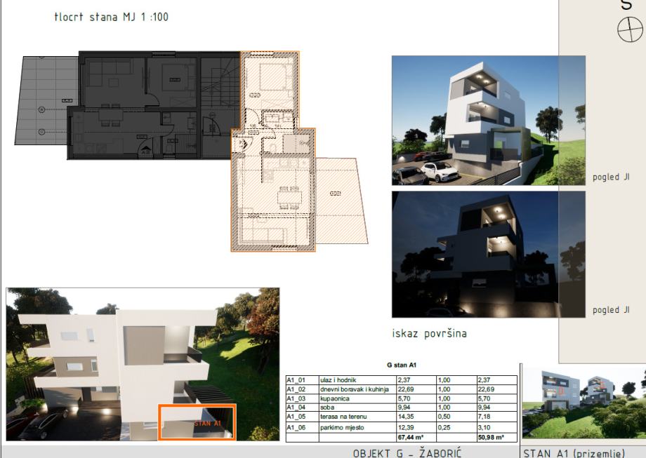 Prodaje se apartman u novogradnji u Žaboriću, idealan za ugodan život ili kao investicija za odmor. Stan se nalazi u prizemlju zgrade te ima ukupnu površinu od 50,98 m2.Stan se sastoji od:- ulaznog hodnika- jedne prostrane spavaće sobe- moderne kupaonice- dnevnog boravka povezanog s kuhinjom- terase površine 15 m2, savršene za opuštanje na otvorenom.Uz stan dolazi i jedno parkirno mjesto.Stan će biti izgrađen od visokokvalitetnih materijala, opremljen PVC stolarijom i klima uređajem, što osigurava dugovječnost i ugodnost boravka tijekom cijele godine. Blizina mora i mirno okruženje čine ovu nekretninu izvrsnim izborom.Agencijska provizija iznosi 3%+PDV od postignute kupoprodajne cijene.Za više informacija vezano za ovu nekretninu kontaktirajte nas na broj telefona: +385911118585 ili e-mail: iva@palace.agency.