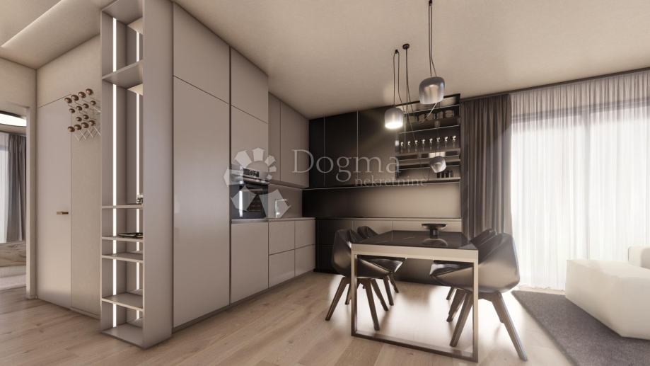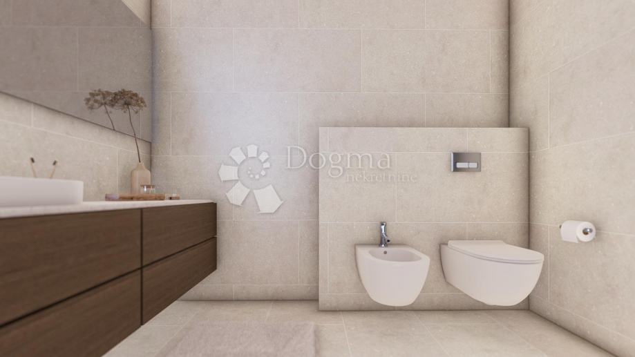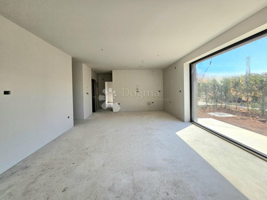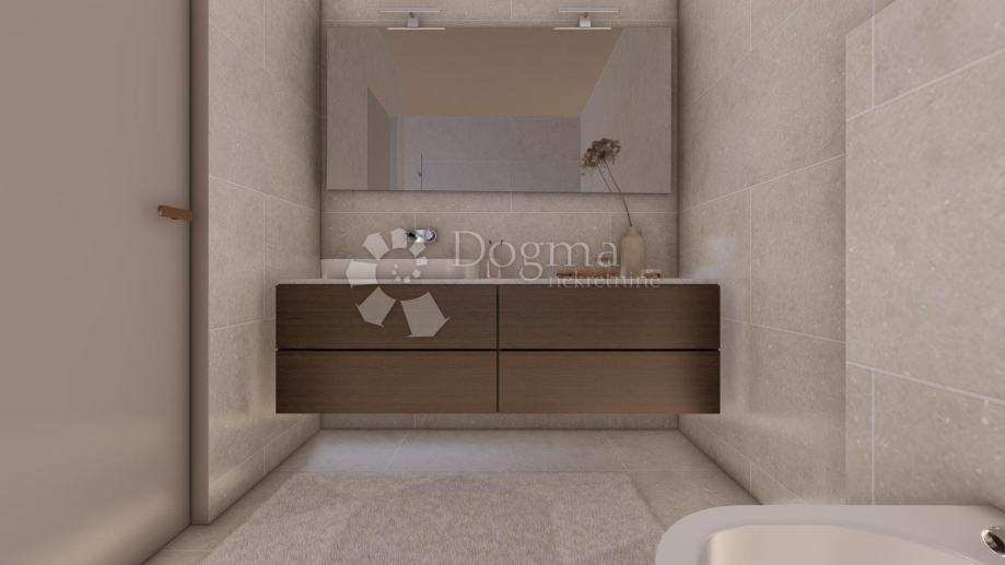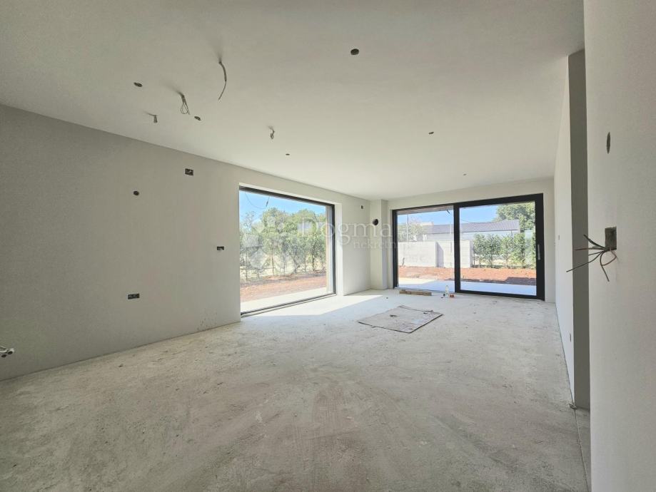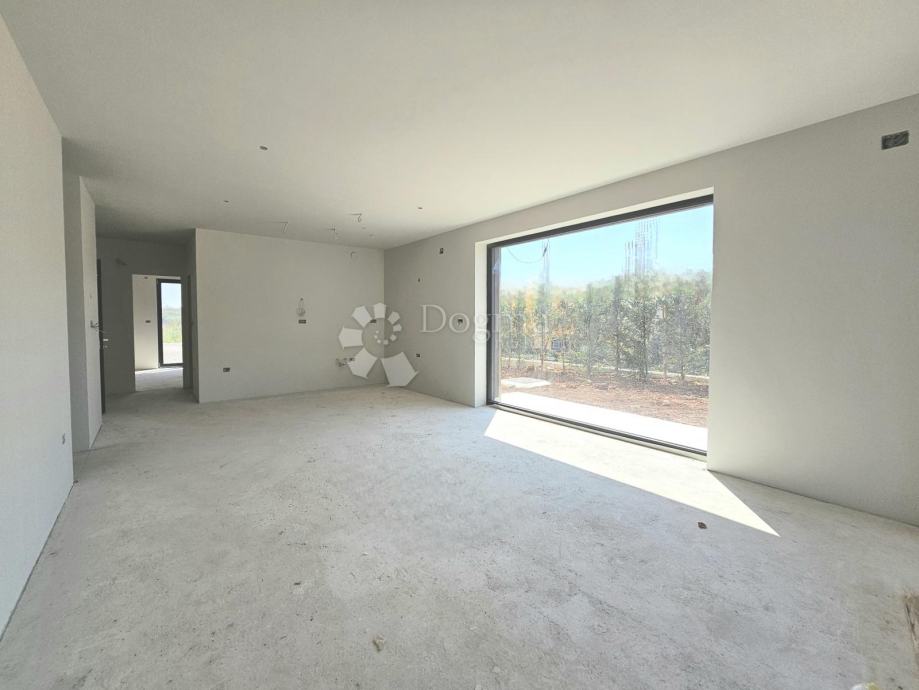 Stan se nalazi u prizemlju, ima terasu od 18,50 m2 (9,25 m2 NETO) a najveća prednost ove nekretnine je okućnica od okvirno 60 m2 koji čini ovaj stan privlačnim izborom za ljude koji žele uživati u blagodatima vanjskog prostora, praktičnosti i dodatnoj slobodi kretanja. Sastoji se od ulaznog prostora, 2 spavaće sobe, kupaonice, spremišta i prostranog dnevnog boravka s kuhinjom. Ispred ulaza je ugradbeni ormar za dodatno pohranjivanje.