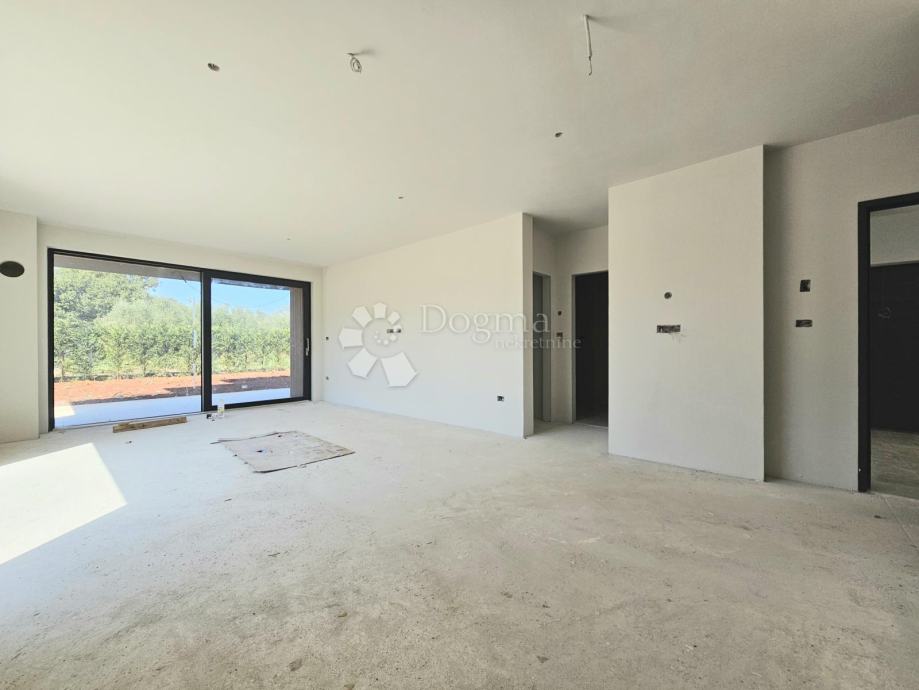 Novogradnja u okolici Umaga, 10 minuta od mora. Stan se nalazi u višestambenoj zgradi sa 6 stanova, izgrađenoj prema visokim standardima. Pročelje je okrenuto prema zapadu s pogledom na zalazak sunca. Izvođač i investitor su pouzdani, što pruža sigurnost budućim vlasnicima.