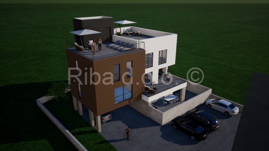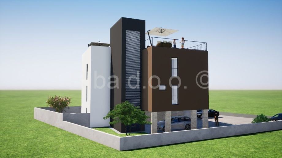 Moderna stambena zgrada s ukupno četiri stana, svaki projektiran s jedinstvenim rasporedom koji osigurava maksimalnu funkcionalnost i udobnost.