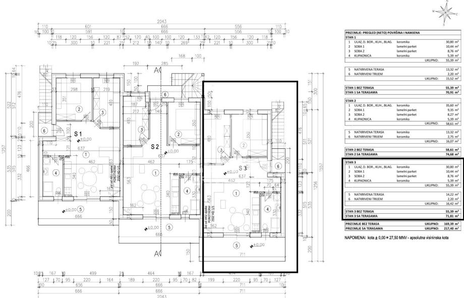 Ovaj komforan stan sa zasebnim ulazom s dvije spavaće sobe ima 72m2.