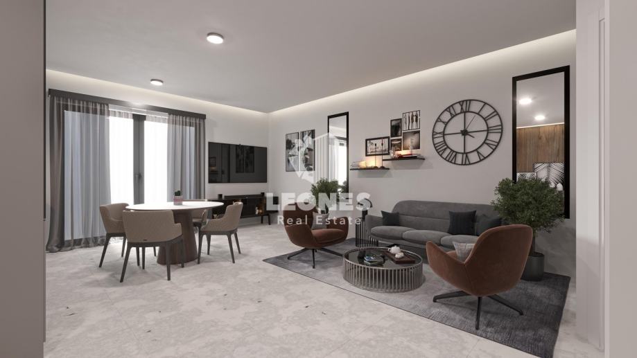 Sastoji se od ulaznog hodnika, kupatila, dvije spavaće sobe i open space prostora u kojem se nalazi kuhinja s blagovaonicom i dnevni boravak s izlazom na natkrivenu terasu .