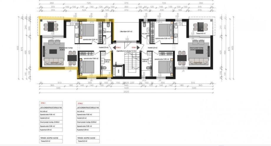 Moderna gradnja i kvalitetni materijali, podno grijanje u kupaoni i dnevnim prostorijama i klima uređaji u svim prostorijama.