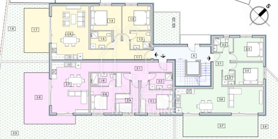 Zgrada se prostire na prizemlje, prvi i drugi kat, s ukupno osam stambenih jedinica. Projektirana je s naglaskom na funkcionalnost, komfor i maksimalnu iskorištenost prirodne svjetlosti. Od opreme izdvajamo : protuprovalna i protupožarna ulazna vrata, kvalitetna Alu stolarija sa šest komora i troslojnim staklom, električne rolete, klima uređaj u svima prostorijama, podno grijanje, lift, kvalitetna keramika.