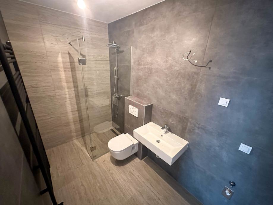 Ulaskom u stan, dočekuje vas prostrani dnevni boravak s kuhinjom i blagovaonicom veličine 39,11 m², koji svojom otvorenošću pruža osjećaj slobode i ugode. Stan se sastoji od dvije spavaće sobe, jedna veličine 11,53 m², a druga 14,18 m², te dvije kupaonice od 5,33 m² i 2,34 m². Hodnik od 4,66 m² povezuje sve prostorije, dok dodatnu vrijednost stanu daju terasa od 15,28 m² te lođa od 22,20 m². Orijentacija stana prema istoku i jugu omogućuje obilje prirodne svjetlosti tijekom dana.