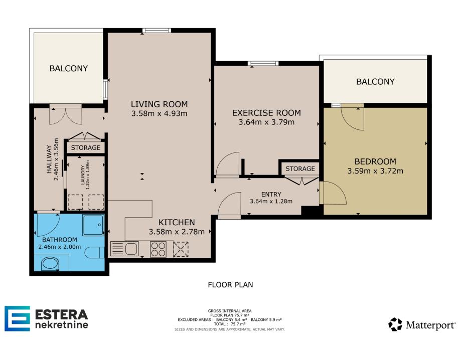 - Dva balkona (5,4 m2 i 5,9 m2) s pogledom na Biogradsku marinu