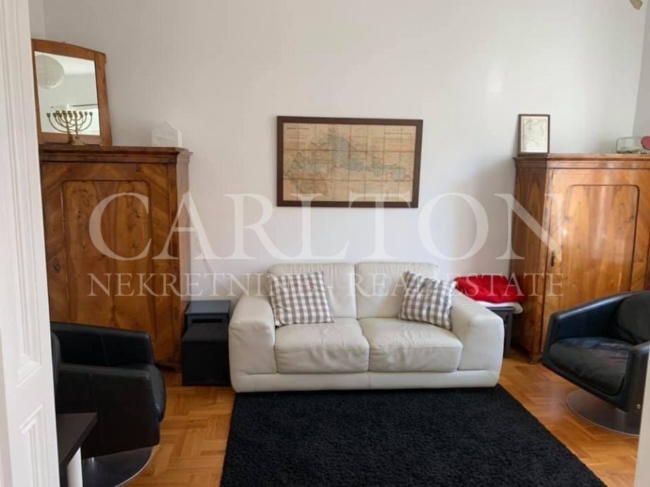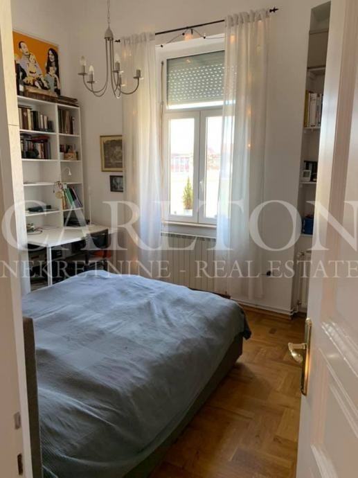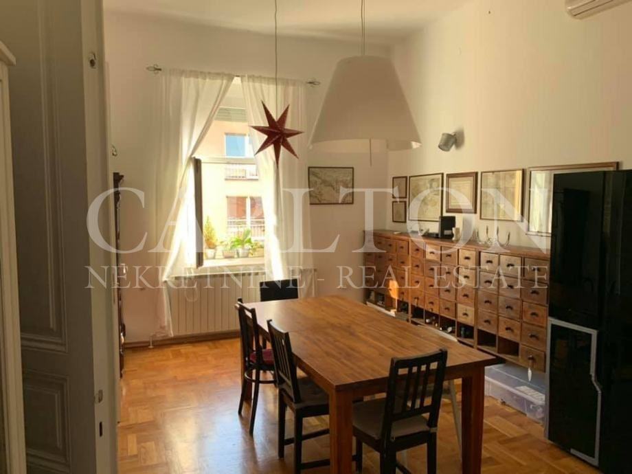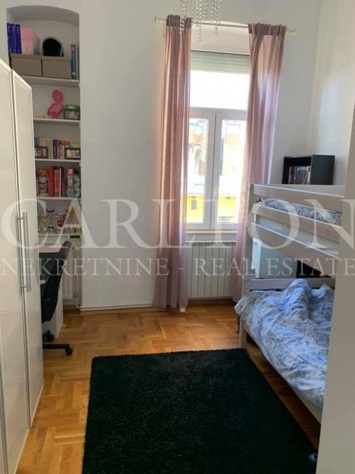 Prodaje se 3-sobni stan u blizini Britanskog trga, sastoji se od 4 sobe (dvije spavaće sobe, dnevni boravak i kuhinja s blagovaonicom), 2 kupaonice (u manjoj samo tuš i WC), hodnika i malog spremišta.