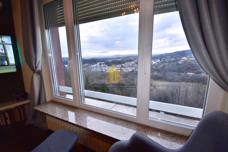 Ono što ovu nekretninu čini posebnom je prekrasan, otvoren panoramski pogled na brežuljke i okolnu prirodu, što osigurava privatnost, mir i obilje dnevnog svjetla tijekom cijelog dana. Zahvaljujući orijentaciji na zapad, jug i sjever, stan je izuzetno svijetao i prozračan, a zalasci sunca pružaju poseban ugođaj iz dnevnog boravka.